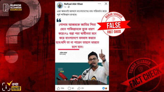 সুতরাং, সাদিক কায়েম ‘গোলাম আজমকে জাতির পিতা মেনে পাকিস্তানকে বুকে ধারণ করে ৭১ বস্তা পচা স্বাধীনতা মনে করে বাংলাদেশে বসবাস করতে হবে, যদি তা না পারেন তাহলে ভারতে চলে যান’ বলে মন্তব্য করেছেন শীর্ষক দাবিটি মিথ্যা।