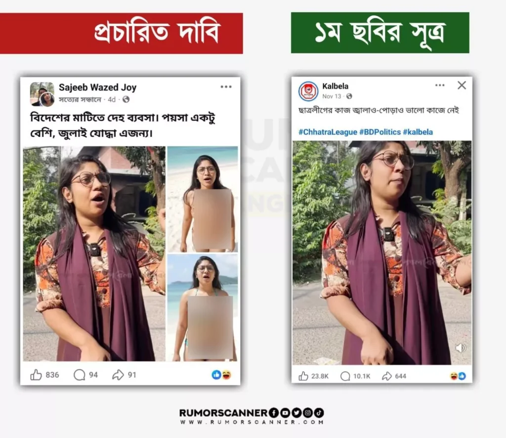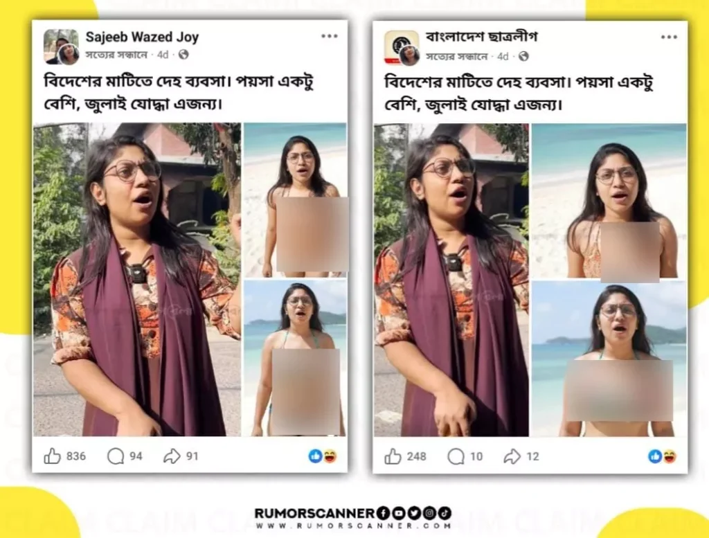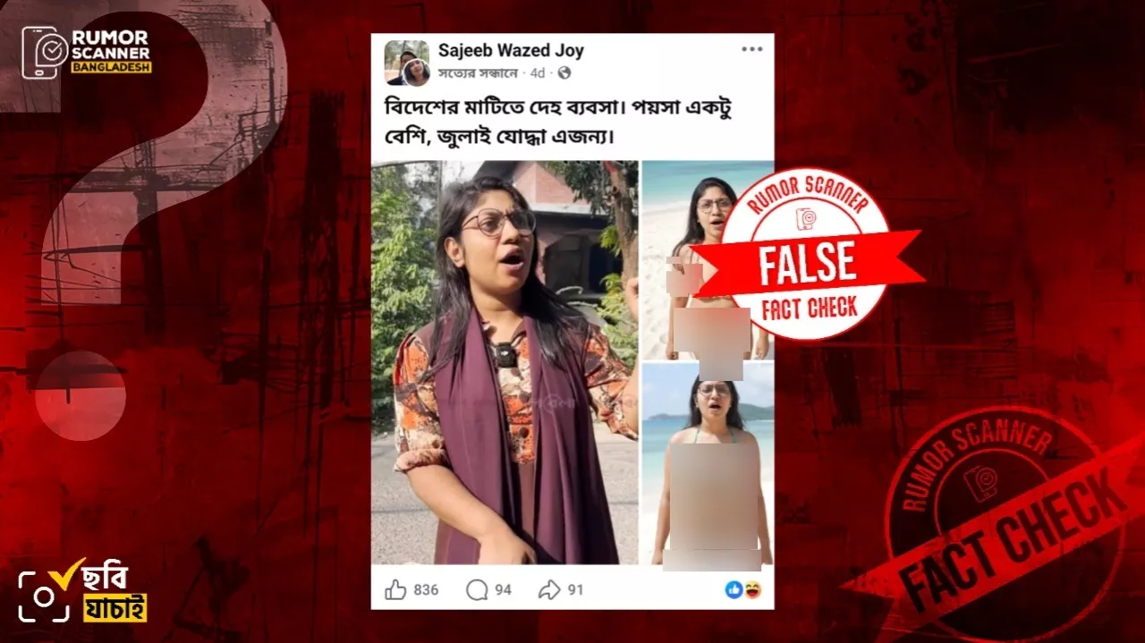সুতরাং, এআই দিয়ে তৈরি ছবি এনসিপি নারী নেত্রী ফারজানা রুমার বিকিনি পরিহিত ছবি দাবিতে প্রচার করা হয়েছে; যা মিথ্যা।
