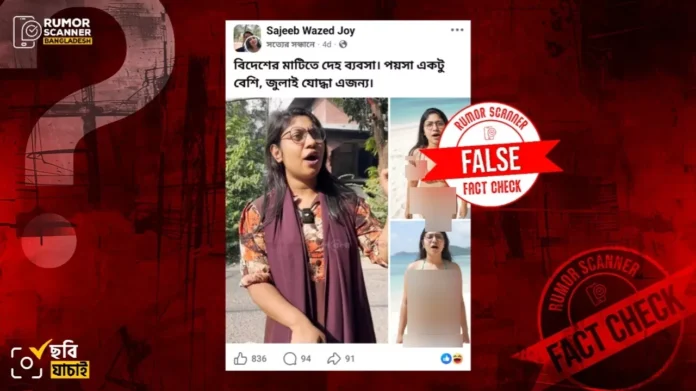 রিউমর স্ক্যানার টিমের অনুসন্ধানে জানা যায়, এনসিপি নারী নেত্রী ফারজানা রুমার বিকিনি পরিহিত ছবি দাবিতে প্রচারিত ছবিগুলো আসল নয় বরং, কৃত্রিম বুদ্ধিমত্তা (এআই) প্রযুক্তির সাহায্যে ছবিগুলো তৈরি করা হয়েছে।