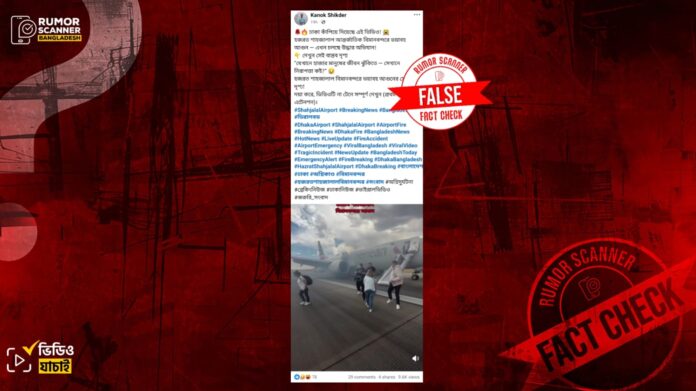 রিউমর স্ক্যানার টিমের অনুসন্ধানে জানা যায়, শাহজালাল আন্তর্জাতিক বিমানবন্দরের কার্গো ভিলেজ কমপ্লেক্স ভবনে আগুন লাগলেও কোনো বিমানে আগুন লাগার ঘটনা ঘটেনি। প্রকৃতপক্ষে, গত জুলাইয়ে যুক্তরাষ্ট্রের ডেনভার আন্তর্জাতিক বিমানবন্দরে একটি বিমানের ল্যান্ডিং গিয়ারে আগুন লাগার পর যাত্রী উদ্ধারের দৃশ্যকে আলোচিত দাবিতে প্রচার করা হয়েছে।