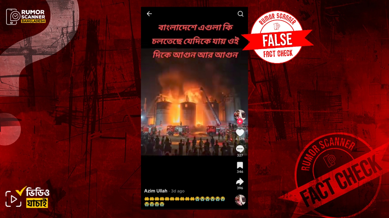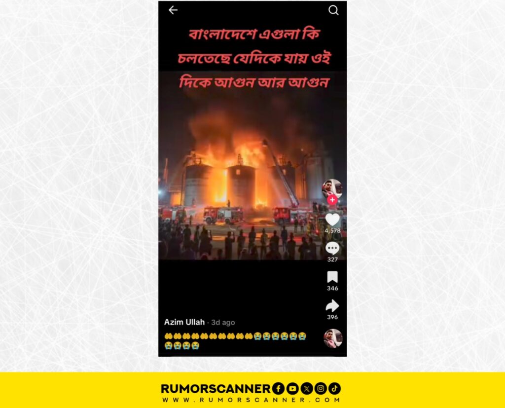 সম্প্রতি গুরুত্বপূর্ণ বিভিন্ন স্থাপনা-কারখানাসহ দেশের বিভিন্ন স্থানে একাধিক অগ্নিকাণ্ডের খবর এসেছে। এরই প্রেক্ষিতে একটি ভিডিও সামাজিক যোগাযোগ মাধ্যমে প্রচার করে দাবি করা হয়েছে যে এটিও বাংলাদেশে অগ্নিকাণ্ডের দৃশ্য।