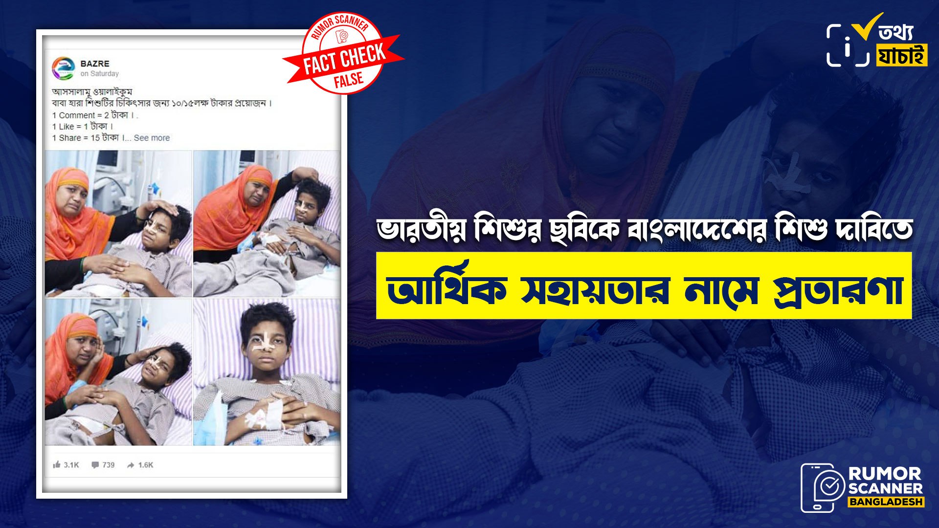 সুতরাং, আর্থিক সহায়তার নামে প্রতারণার উদ্দেশ্যে ভারতীয় শিশুর ছবি সম্বলিত পোস্ট বাংলাদেশের শিশু তাহমিদের দাবিতে সামাজিক মাধ্যমে প্রচার করা হচ্ছে; যা সম্পূর্ণ মিথ্যা।