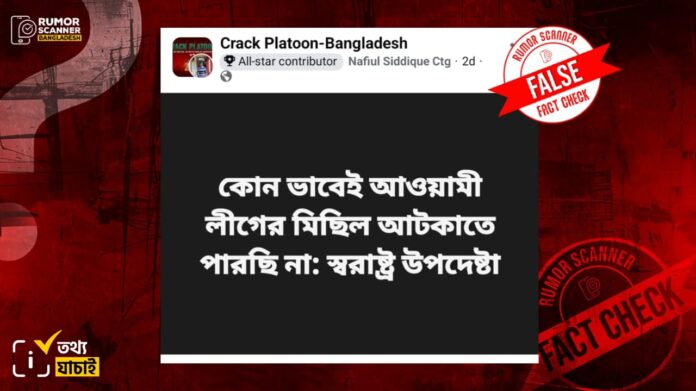 সম্প্রতি ‘কোন ভাবেই আওয়ামী লীগের মিছিল আটকাতে পারছি না: স্বরাষ্ট্র উপদেষ্টা’ এবং ‘আওয়ামী লীগকে কোনো ভাবেই আটকাতে পারছি না: স্বরাষ্ট্র উপদেষ্টা’ শীর্ষক একাধিক বক্তব্য সামাজিক যোগাযোগ মাধ্যমে প্রচার করা হয়েছে