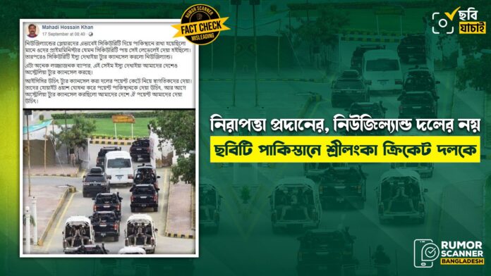 “নিউজিল্যান্ডের প্লেয়ারদের এভাবেই সিকিউরিটি দিয়ে পাকিস্থানে রাখা হয়েছিলো” শীর্ষক শিরোনামে একটি ছবি সামাজিক যোগাযোগ মাধ্যম ফেসবুকে ছড়িয়ে পড়েছে।
