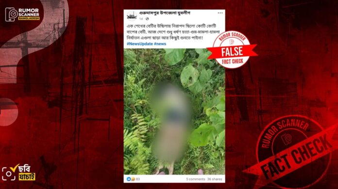 রিউমর স্ক্যানার টিমের অনুসন্ধানে জানা যায়, আলোচিত ধর্ষণের পর হত্যার অভিযোগে প্রচারিত ছবিটি বাংলাদেশের নয় বরং ভারতের ঘটনাকে বাংলাদেশের দাবিতে প্রচার হচ্ছে।