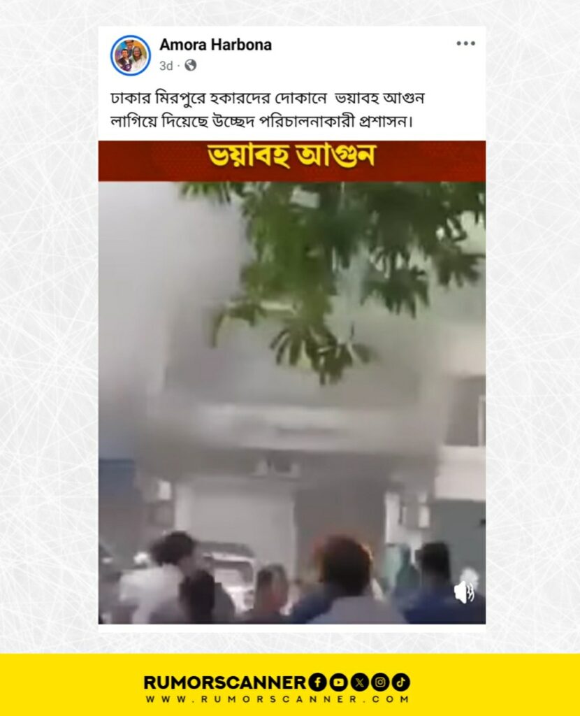 রিউমর স্ক্যানার টিমের অনুসন্ধানে জানা যায়, প্রচারিত অগ্নিকাণ্ডের ভিডিওটি মিরপুরে হকারদের দোকান উচ্ছেদের সময় ধারণ করা নয় এবং এর ঘটনাস্থল বাংলাদেশেও নয়। প্রকৃতপক্ষে, ভিডিওটি গত ৯ ডিসেম্বর ইন্দোনেশিয়ার রাজধানী জাকার্তায় সংঘটিত একটি অগ্নিকাণ্ডের ঘটনার।