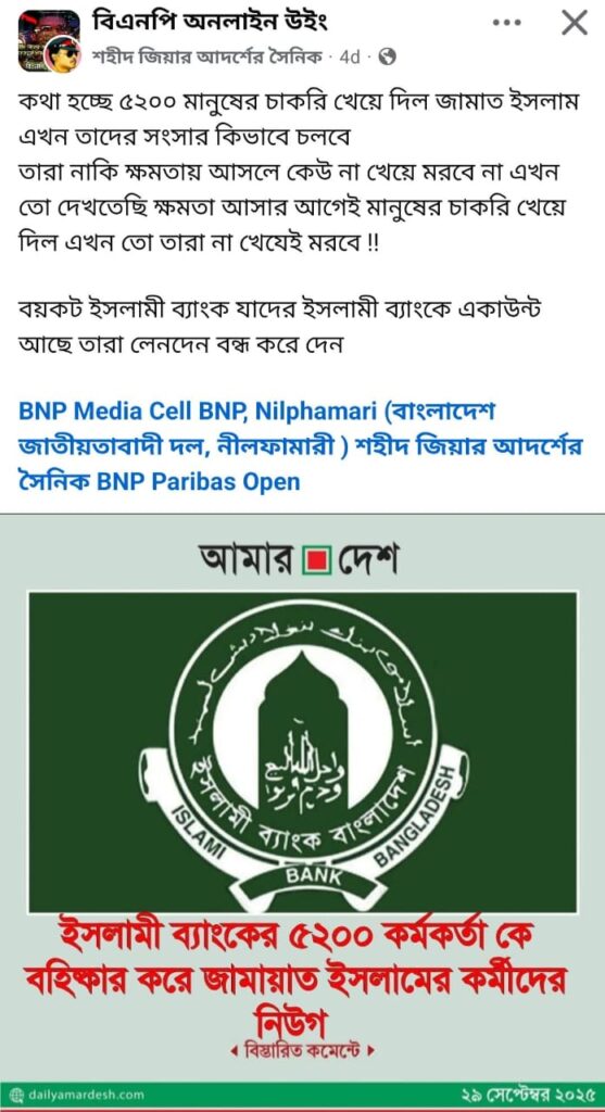 ইসলামী ব্যাংকের কর্মকর্তা ছাঁটাই নিয়ে আমার দেশের নামে সম্পাদিত ফটোকার্ড প্রচার