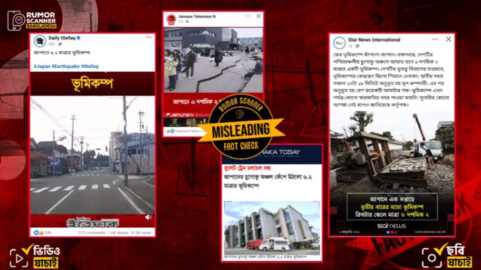 জাপানের গত ৬ জানুয়ারির ভূমিকম্পের দৃশ্য দাবিতে দেশের গণমাধ্যমে প্রচারিত আলোচিত তিনটি ছবি ও একটি ভিডিও পৃথকভাবে যাচাই করে রিউমর স্ক্যানার।