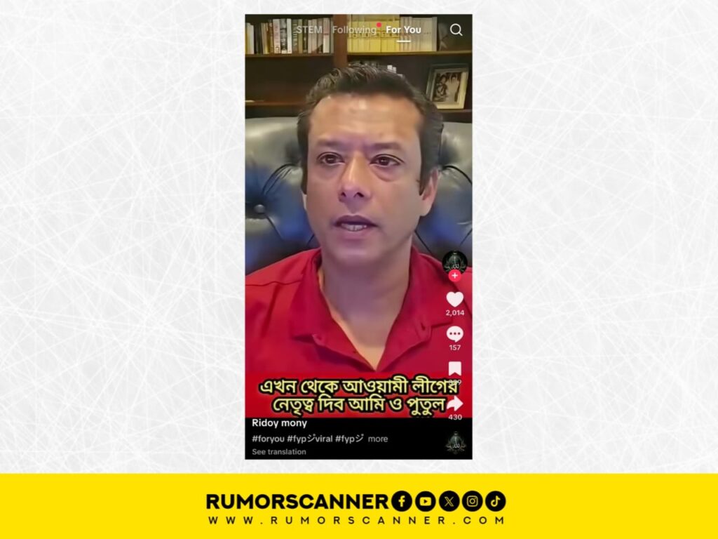 এ বিষয়ে অনুসন্ধানে মূলধারার গণমাধ্যম ও আওয়ামী লীগ সংশ্লিষ্ট নির্ভরযোগ্য সূত্রে এই ভিডিওর বিষয়ে কোনো তথ্য মেলেনি।
