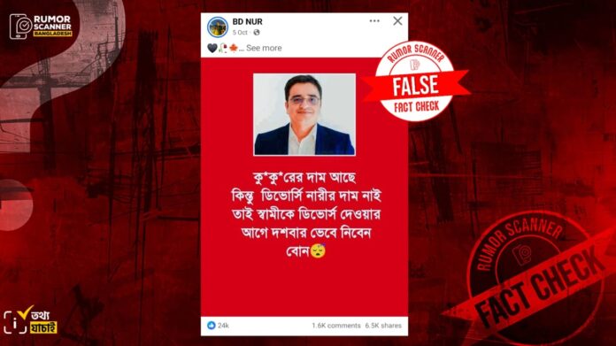 সুতরাং, ডিভোর্সি নারীর দাম নেই বলে মন্তব্য করেছেন সাংবাদিক খালেদ মুহিউদ্দীন শীর্ষক দাবিটি মিথ্যা।