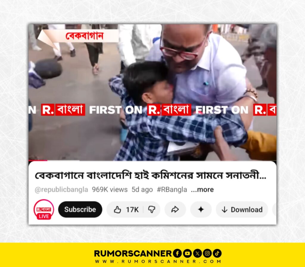 পরবর্তীতে অনুসন্ধানে রিপাবলিক বাংলা’র ইউটিউব চ্যানেলে প্রচারিত একইদিন বাংলাদেশ উপ-হাইকমিশনের সামনে থেকে ময়ূখ রঞ্জন ঘোষের করা একটি লাইভ ভিডিও খুঁজে পাওয়া যায়। লাইভ ভিডিওটির ৪০ সেকেন্ড সময় থেকে দেখতে পাওয়া যায়, বিক্ষোভে আহত এক যুবককে মাটি থেকে তুলতে গিয়ে ময়ূখের শার্টে তার রক্ত লেগে যায়।