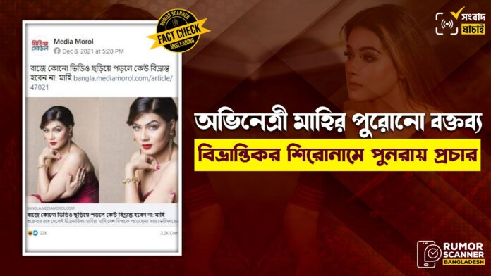 গত আগস্ট মাসে ফেসবুক ভেরিফাইড পেজ হ্যাক পরবর্তী সময়ে গণমাধ্যমকে দেওয়া মাহির বক্তব্যকে তারিখ উল্লেখ ছাড়াই বিভিন্ন বেনামী অনলাইন পোর্টালে পুনরায় প্রকাশের মাধ্যমে প্রচার করা হচ্ছে।