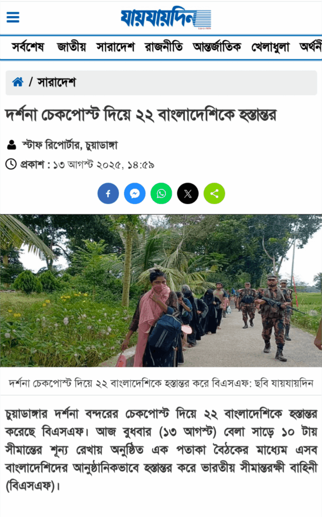 - Jaijaidin Website: দর্শনা চেকপোস্ট দিয়ে ২২ বাংলাদেশিকে হস্তান্তর