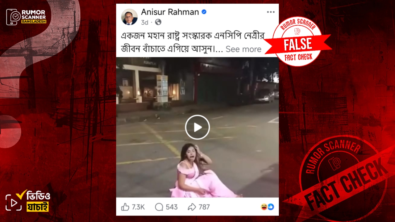 সম্প্রতি সামাজিক যোগাযোগ মাধ্যমে এক নারীর রাস্তায় বসে চিৎকারের ভিডিও প্রচার করে দাবি করা হয়েছে, উক্ত নারী এনসিপির নেত্রী।