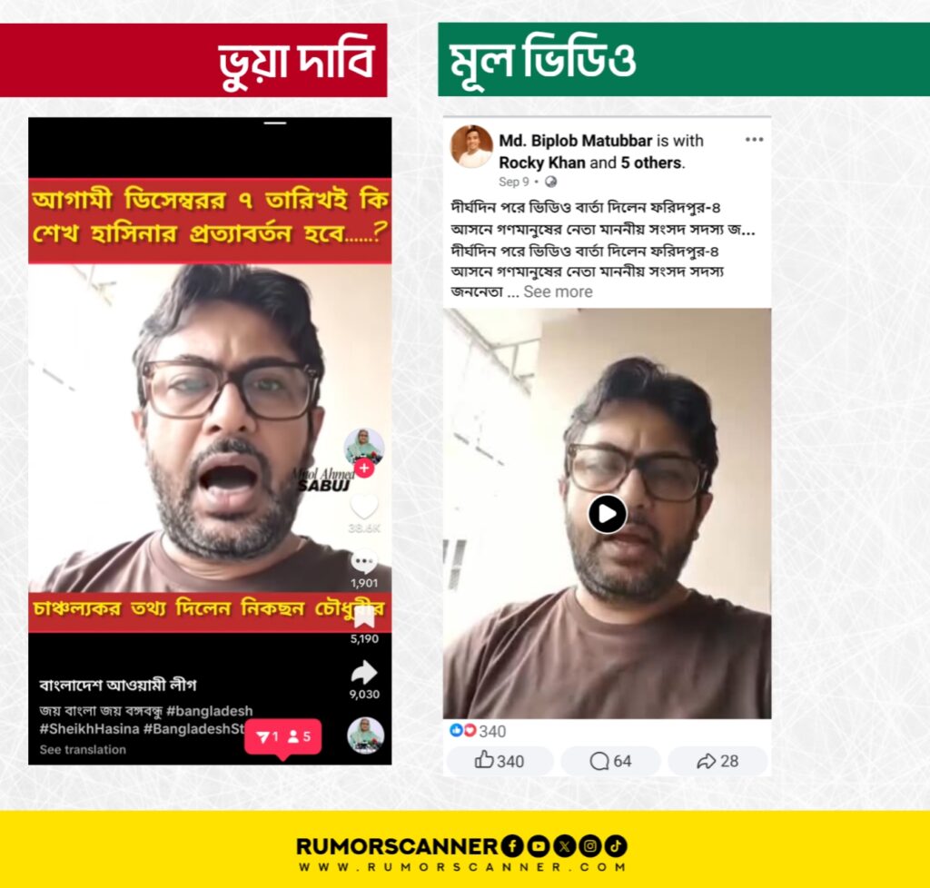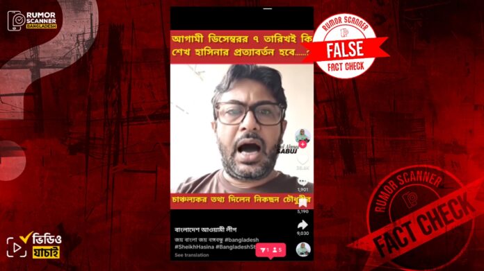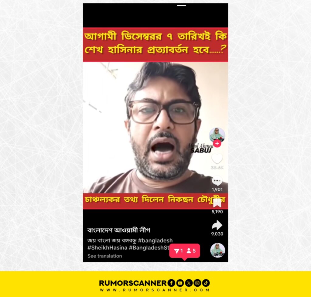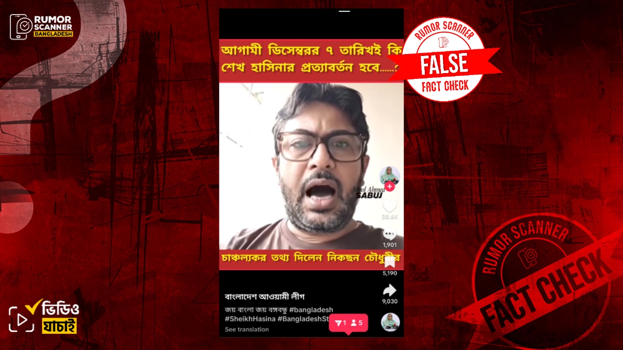 সুতরাং, শেখ হাসিনা ৭ ডিসেম্বর দেশে ফিরছেন জানিয়ে ভিডিও বার্তা দিয়েছেন নিক্সন চৌধুরী শীর্ষক দাবিটি মিথ্যা।