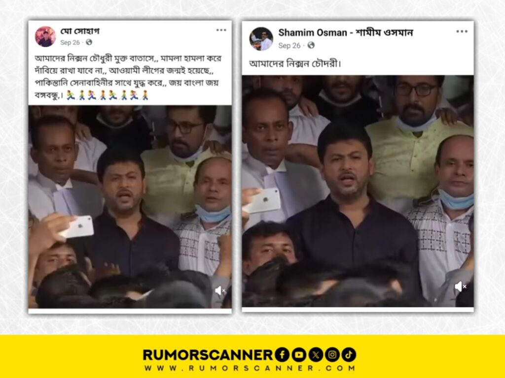 রিউমর স্ক্যানার টিমের অনুসন্ধানে জানা যায়, প্রচারিত ভিডিওটি সাম্প্রতিক সময়ে মুজিবুর রহমান চৌধুরী নিক্সনের জনসমক্ষে আসার ভিডিও নয়। প্রকৃতপক্ষে, ২০২০ সালে নিক্সন চৌধুরীর হাইকোর্টে উপস্থিত হওয়ার ভিডিওকে সাম্প্রতিক ঘটনা দাবিতে প্রচার করা হয়েছে।