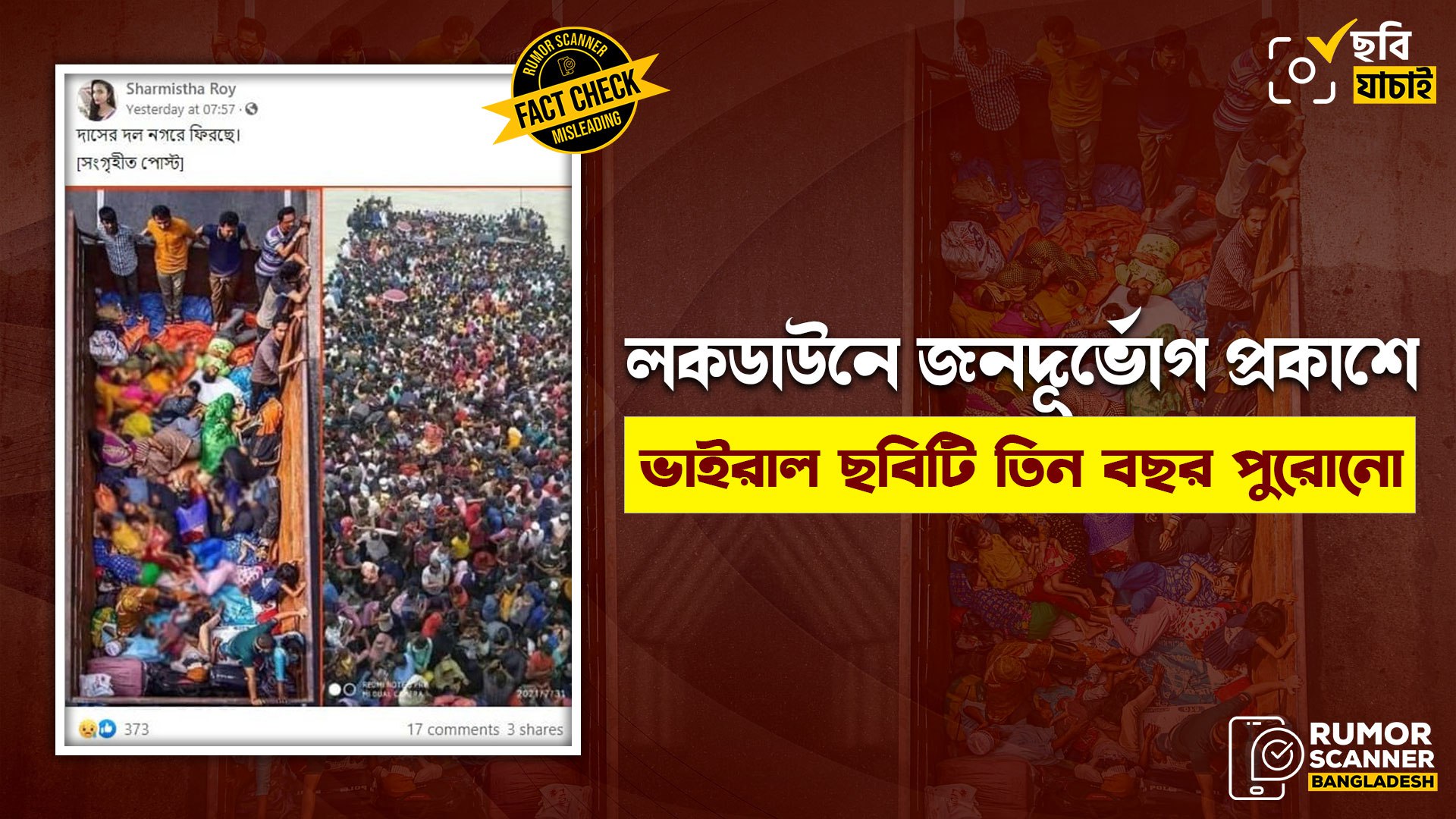 অর্থাৎ, ৩ বছর পূর্বে ইদ উপলক্ষে ঘরমুখো মানুষের একটি ছবিকে বর্তমানে চলমান লকডাউনের ছবি হিসেবে প্রচার করা হচ্ছে যা সম্পূর্ণ বিভ্রান্তিকর।
