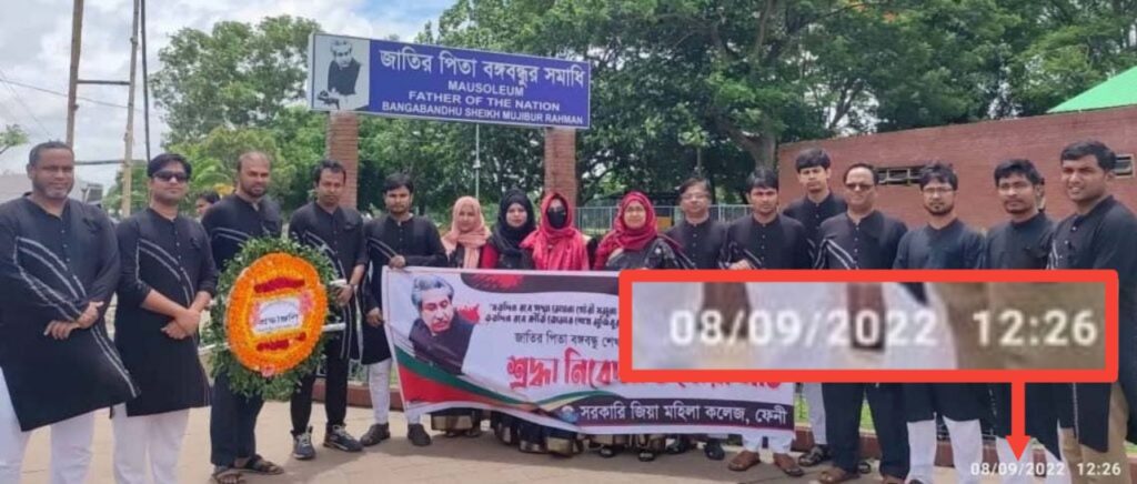 রিউমর স্ক্যানার টিমের অনুসন্ধানে দেখা যায়, ফেনী সরকারি জিয়া মহিলা কলেজের পক্ষ থেকে বঙ্গবন্ধু শেখ মুজিবুর রহমানের সমাধিসৌধে শ্রদ্ধা নিবেদনের ছবিটি সাম্প্রতিক সময়ের নয়। প্রকৃতপক্ষে, ২০২২ সালের আগস্টে উক্ত কলেজের পক্ষ থেকে শ্রদ্ধা নিবেদনের পুরোনো ছবিকে সাম্প্রতিক দাবিতে প্রচার করা হয়েছে।
