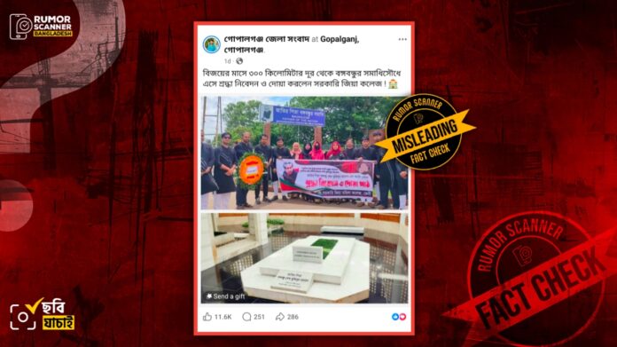 আলোচিত দাবিটির বিষয়ে অনুসন্ধানে প্রচারিত ছবিটি রিভার্স ইমেজ সার্চের মাধ্যমে দৈনিক ফেনীর সময় নামের স্থানীয় গণমাধ্যমের ওয়েবসাইটে সরকারি জিয়া মহিলা কলেজের ততকালীন অধ্যক্ষ প্রফেসর কামরুন নাহারের লেখা একটি উপ-সম্পাদকীয়র সন্ধান পাওয়া যায়। উপ-সম্পাদকীয়তে তিনি শোকাবহ আগস্ট উপলক্ষে তাদের গোপালগঞ্জের টুঙ্গিপাড়া অবস্থিত বঙ্গবন্ধু শেখ মুজিবুর রহমানের সমাধিসৌধ ভ্রমণের অভিজ্ঞতা তুলে ধরেন।
