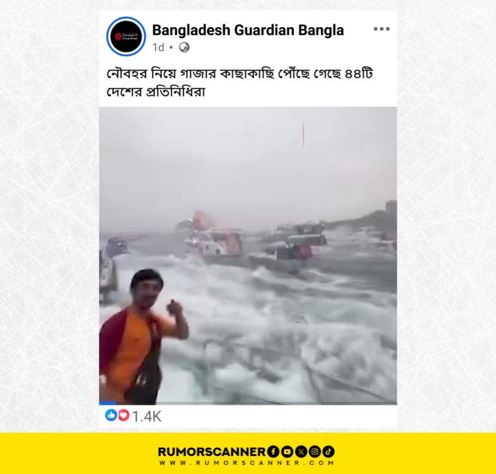 সুতরাং, নৌবহর নিয়ে গাজার নিকটে ৪৪ দেশের প্রতিনিধিরা দাবিতে ভিন্ন ঘটনার পুরোনো ভিডিও প্রচার করা হয়েছে; যা সম্পূর্ণ মিথ্যা।