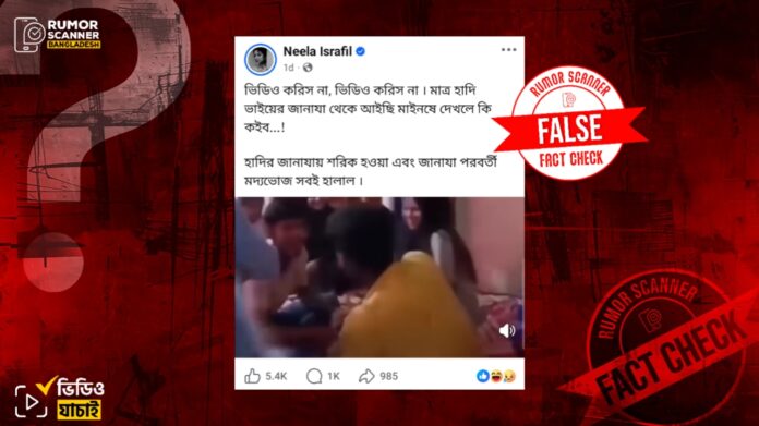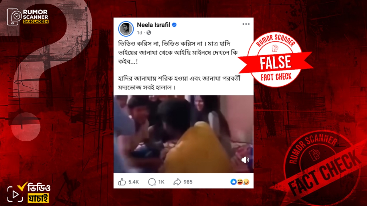 সুতরাং, ওসমান হাদির জানাজার পর মদের আসরের দৃশ্য দাবিতে ইন্টারনেটের পুরোনো ভিডিও প্রচার করা হয়েছে; যা মিথ্যা।