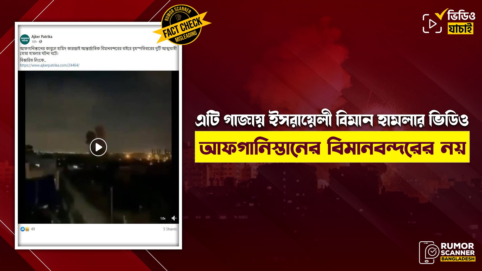 অর্থাৎ, গাজা উপত্যকায় ইসরায়েলি বিমান হামলার ভিডিওকে আফনিগানিস্তানের কাবুলে বিমানবন্দরে বোমা হামলার চিত্র দাবিতে প্রচার করা হচ্ছে যা সম্পূর্ণ বিভ্রান্তিকর।