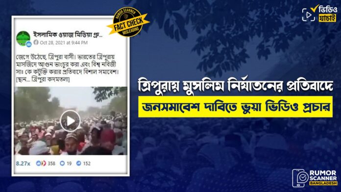 অর্থাৎ, পুরোনো ও ভিন্ন ঘটনার একটি ভিডিওকে বর্তমানে ত্রিপুরায় মসজিদে আগুন-ভাংচুরের প্রতিবাদে বিশাল সমাবেশ দাবিতে সামাজিক যোগাযোগ মাধ্যমগুলোতে প্রচার করা হচ্ছে যা সম্পূর্ণ বিভ্রান্তিকর।