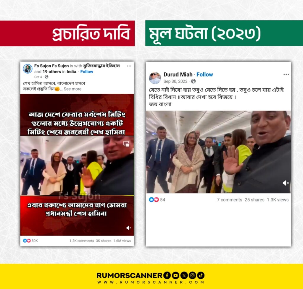 সুতরাং, শেখ হাসিনার প্রকাশ্যে আসার দাবিতে ২০২৩ সালের পুরোনো ভিডিও প্রচার করা হচ্ছে; যা সম্পূর্ণ মিথ্যা।