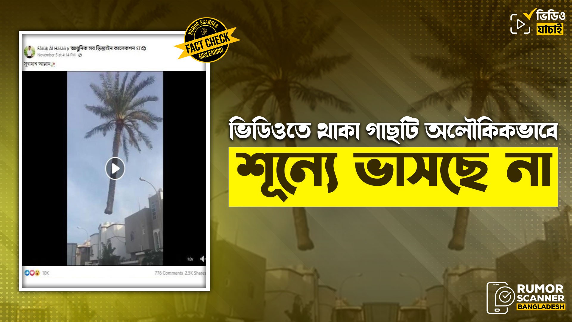 রিউমর স্ক্যানার টিমের অনুসন্ধানে দেখা যায়, ভিডিওতে থাকা গাছটি অলৌকিকভাবে আকাশে ভাসছে না বরং এটি ক্রেনের সাহায্যে গাছটিকে ভাসমান অবস্থায় এক স্থান থেকে অন্য স্থানে নেওয়ার ভিডিও।