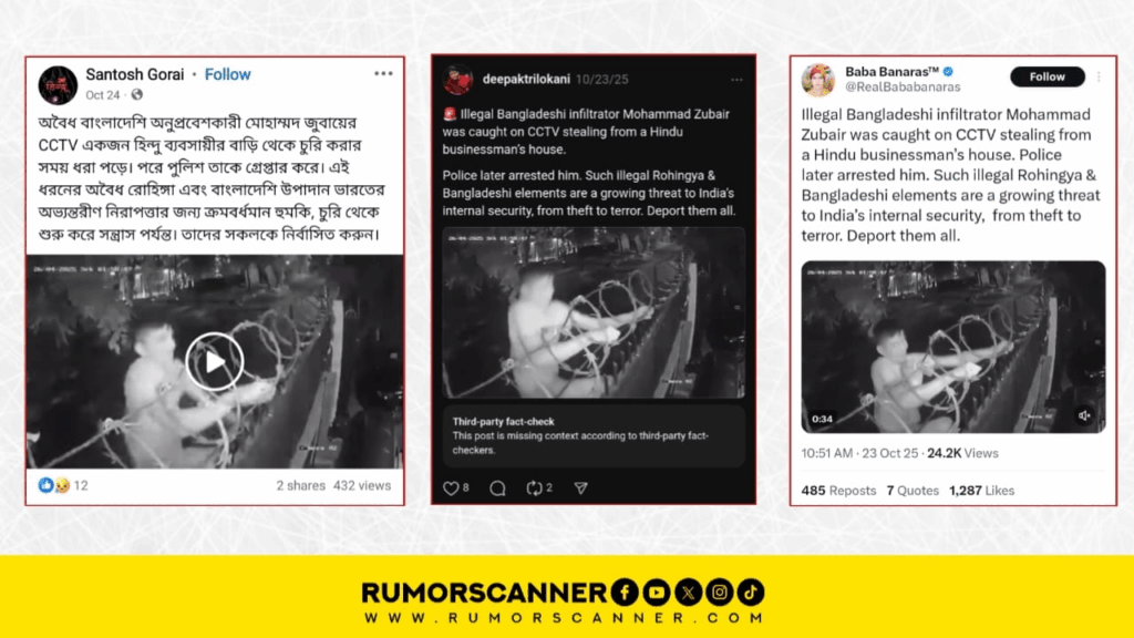 সম্প্রতি, “বাংলাদেশি অনুপ্রবেশকারী ভারতে এক হিন্দু ব্যবসায়ীর বাড়ি থেকে সাইকেল চুরি করেছে” দাবিতে একটি সিসিটিভি ফুটেজের দৃশ্য ইন্টারনেটে প্রচার করা হয়েছে।