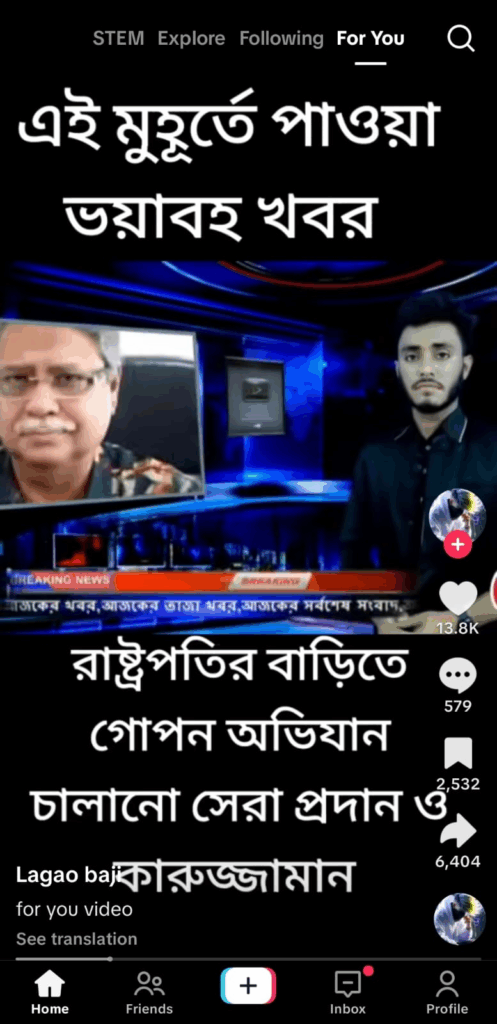 উক্ত দাবিতে টিকটকে প্রচারিত ভিডিও দেখুন: এখানে (আর্কাইভ)। এই প্রতিবেদন প্রকাশ অবধি ভিডিওটি প্রায় ৪ লক্ষ ৭৩ হাজার বার দেখা হয়েছে এবং প্রায় ১৪ হাজার পৃথক অ্যাকাউন্ট হতে প্রতিক্রিয়া দেখানো হয়েছে।