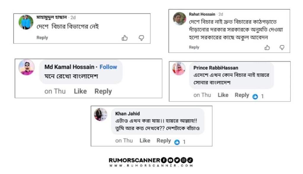 ভিডিওটির মন্তব্য সেকশন পর্যবেক্ষণ করলে বাংলাদেশের ভিডিও মর্মে অনেক নেটিজেনকে মন্তব্য করতে দেখা যায়।