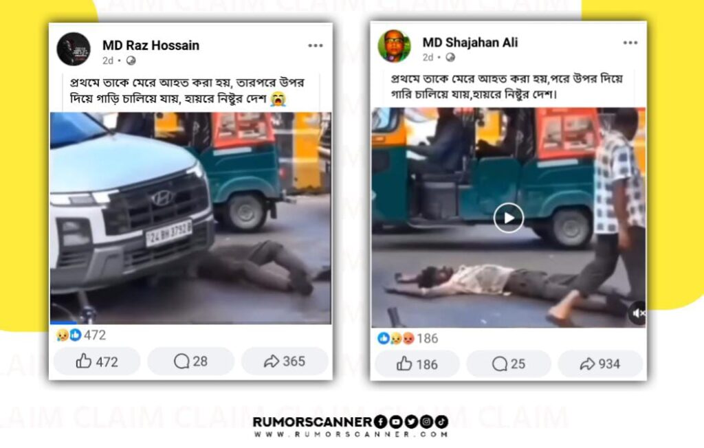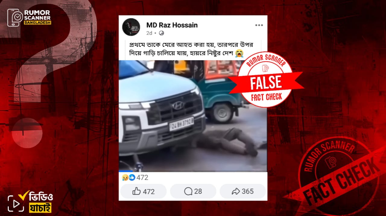 অর্থাৎ, দাবি করা হয়েছে, ভিডিওটি বাংলাদেশে এক ব্যক্তির ওপর দিয়ে গাড়ি চালানোর দৃশ্যের।