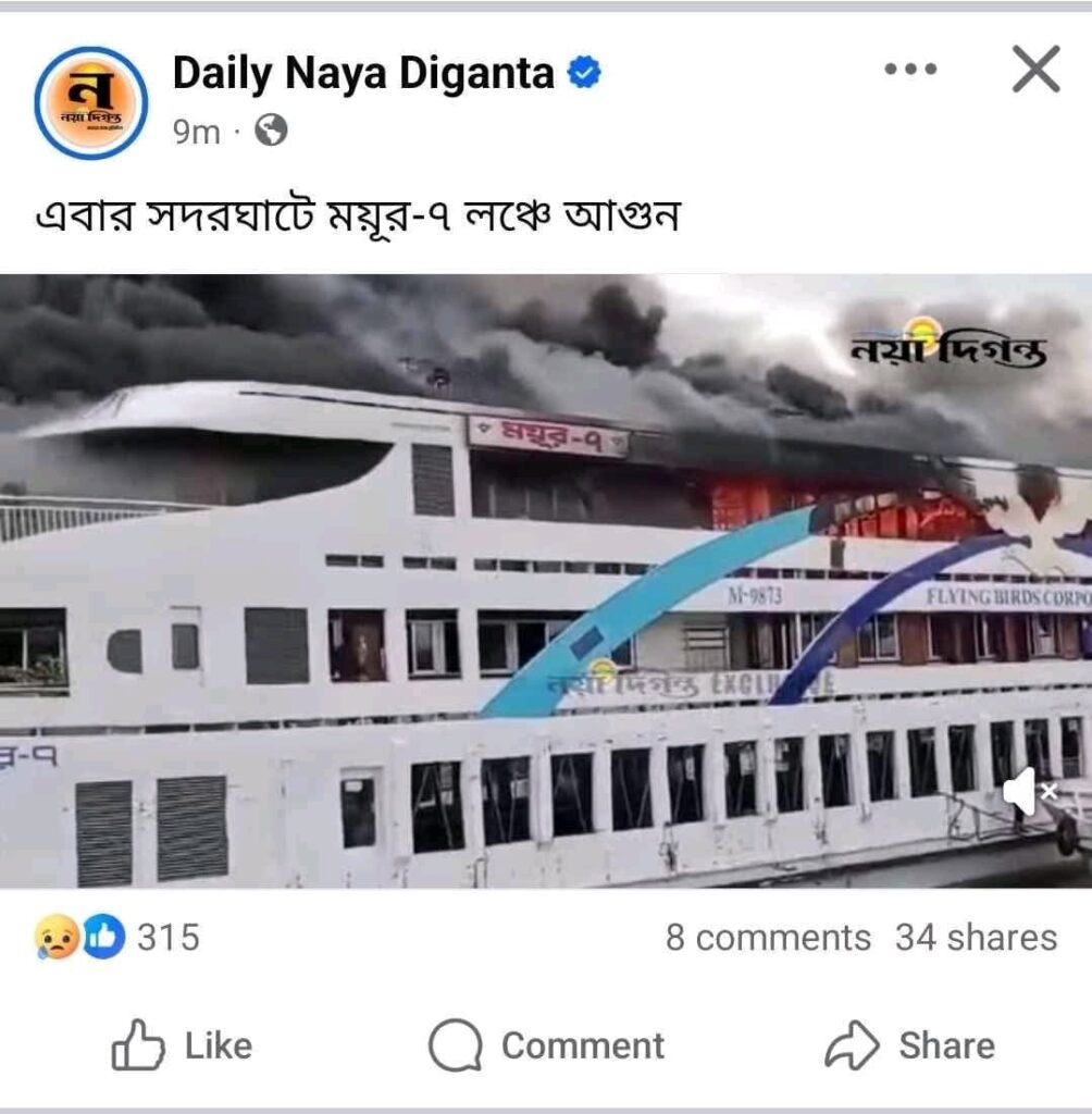 - Prothom Alo – সদরঘাটে ময়ূর-৭ লঞ্চে আগুন