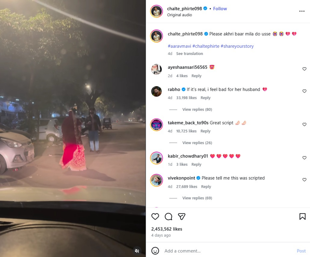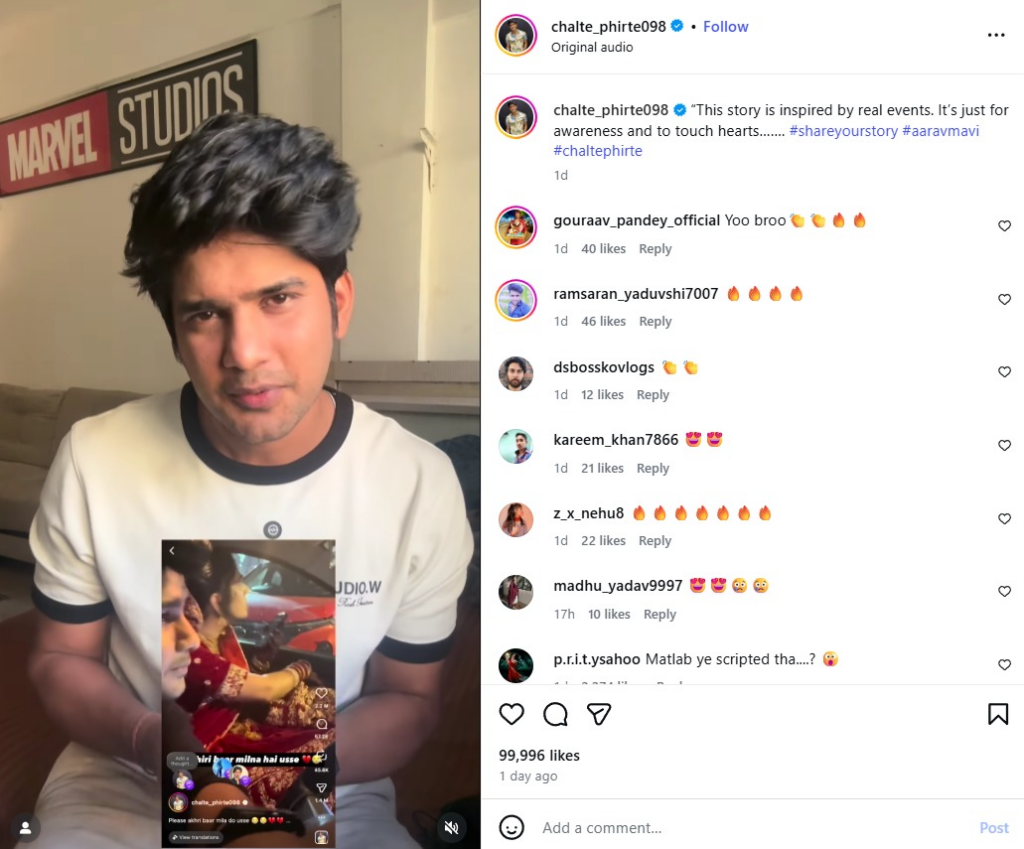 উক্ত ইন্সটাগ্রাম অ্যাকাউন্ট পর্যবেক্ষণ করে নিশ্চিত হওয়া যায় যে, এটি আরাভ মাভি নামের একজন ভারতীয় কনটেন্ট ক্রিয়েটরের অ্যাকাউন্ট। তিনি নিয়মিতভাবে সমসাময়িক গল্পের ওপর ভিত্তি করে বিভিন্ন নাট্যধর্মী কনটেন্ট তৈরি ও প্রচার করেন।
