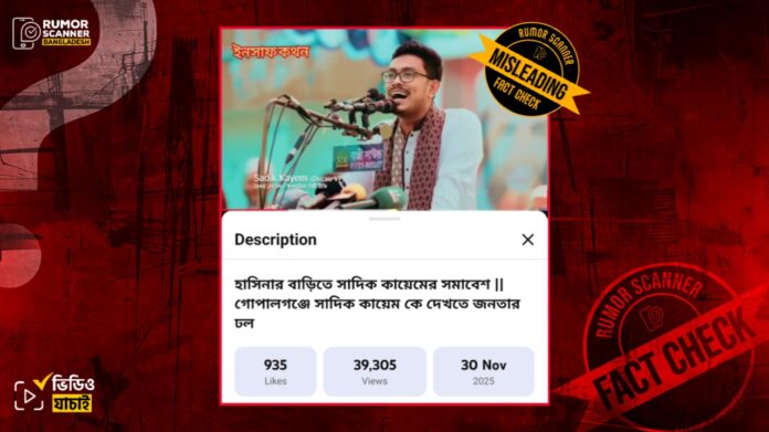 সম্প্রতি, ’হাসিনার বাড়িতে সাদিক কায়েমের সমাবেশ। গোপালগঞ্জে সাদিক কায়েমকে দেখতে জনতার ঢল’ দাবিতে একটি ভিডিও ইন্টারনেটে ছড়িয়ে পড়েছে।