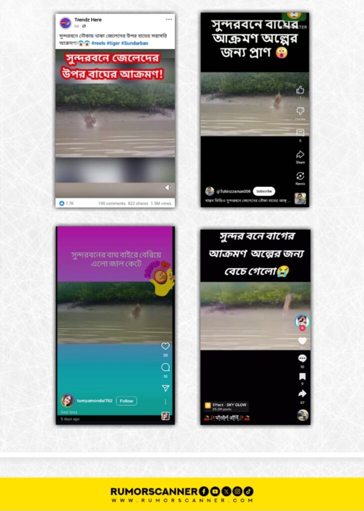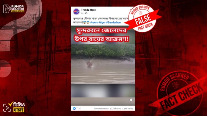 সম্প্রতি ‘সুন্দরবনে নৌকায় থাকা জেলেদের উপর বাঘের সরাসরি আক্রমণ’ ক্যাপশনে একটি ভিডিও সামাজিক যোগাযোগ মাধ্যমে প্রচার করা হয়েছে৷