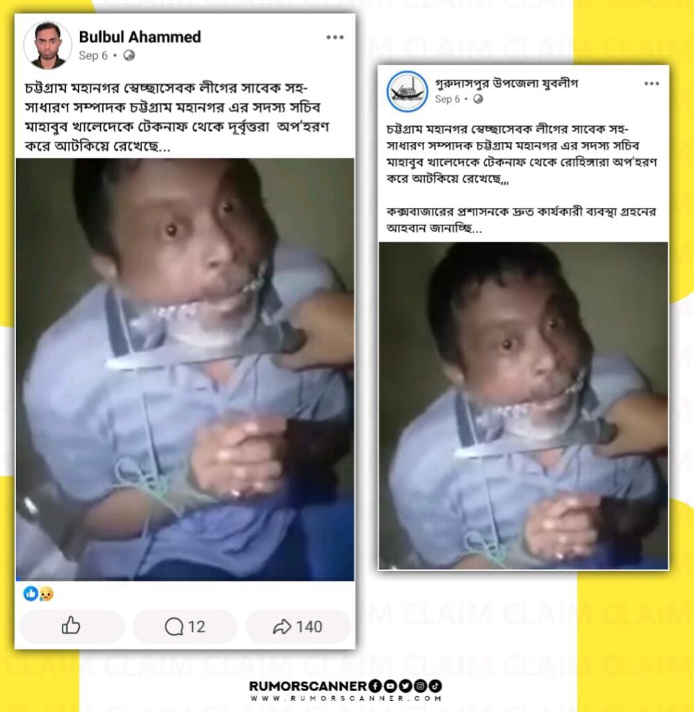 এ বিষয়ে অনুসন্ধানে কক্সবাজার ভিত্তিক সংবাদমাধ্যম ‘Coxs Bazar News-CBN’ এর ফেসবুক পেজে গত ৬ সেপ্টেম্বরে প্রচারিত একটি ভিডিও পোস্ট পাওয়া যায়। ভিডিওতে প্রদর্শিত দৃশ্যের সাথে আলোচিত দাবিতে প্রচারিত ভিডিওতে প্রদর্শিত দৃশ্যের তুলনা করলে ব্যক্তি ও দৃশ্যের মিল পাওয়া যায়। ভিডিওটি সম্পর্কে পোস্টের ক্যাপশনে বলা হয়, ‘রো’হিঙ্গাদের হাতে অপ’হৃত চট্টগ্রাম মহানগর স্বেচ্ছাসেবক দলের সাবেক সহ-সাধারণ সম্পাদক ও জিয়া সাইবার ফোর্সের সদস্য সচিব মাহাবুব খালেদ’।