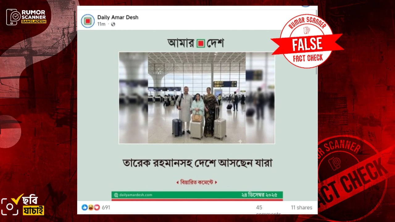 রিউমর স্ক্যানার টিমের অনুসন্ধানে জানা যায়, স্ত্রী ও কন্যার সাথে তারেক রহমানের এই ছবিটি আসল নয়। প্রকৃতপক্ষে, এআই দিয়ে এই ভুয়া ছবিটি তৈরি করা হয়েছে।