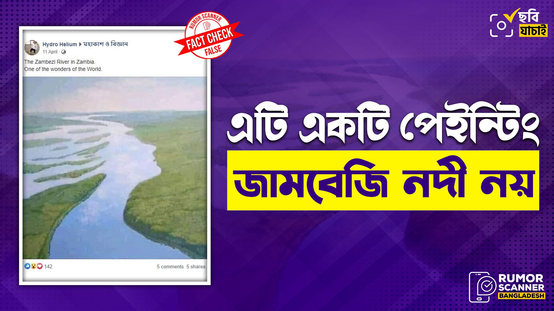 অর্থাৎ, একজন শিল্পীর তৈরি এক্রাইলিক চিত্রণকে জাম্বিয়ার জামবেজি নদী দাবিতে সামাজিক যোগাযোগ মাধ্যমগুলোতে প্রচার করা হচ্ছে যা সম্পূর্ণ মিথ্যা।