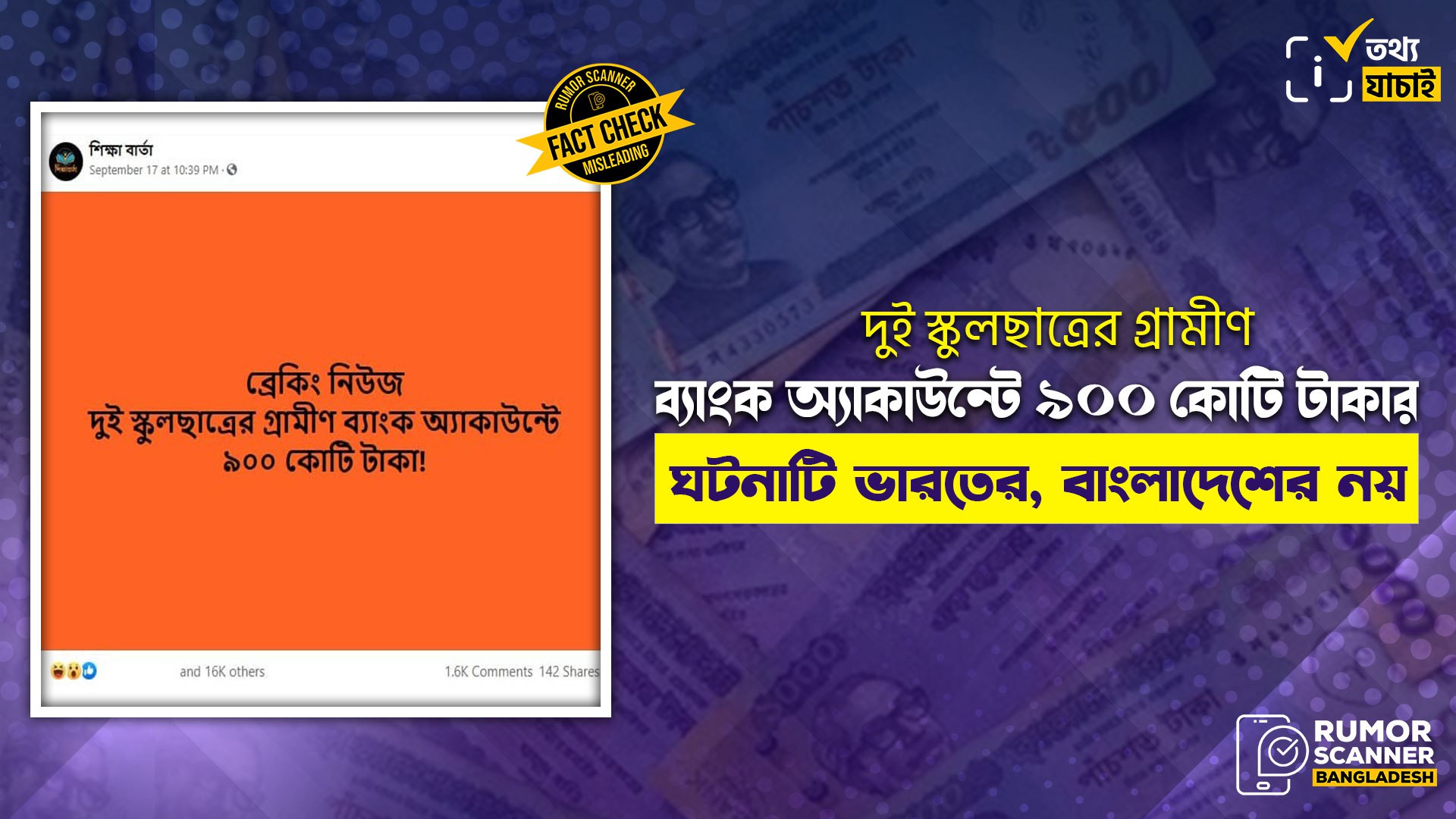 - Claim Review: ব্রেকিং নিউজ, দুই স্কুলছাত্রের গ্রামীণ ব্যাংক অ্যাকাউন্টে ৯০০ কোটি টাকা