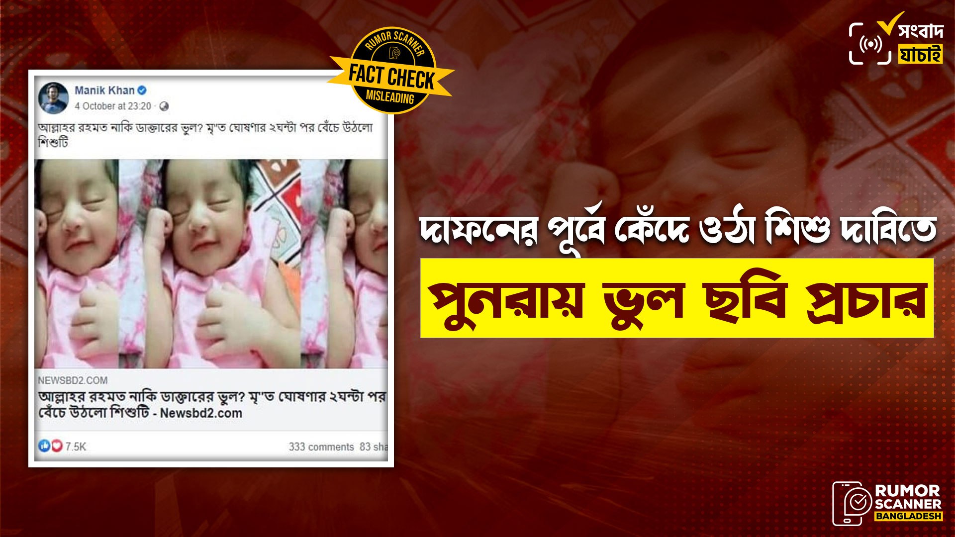 অর্থাৎ, গতবছরে ঢামেকে মৃত ঘোষণার পর দাফনের সময় কেঁদে ওঠা শিশুর ঘটনায় ভিন্ন একটি শিশুর ছবি যুক্ত করে নতুনকরে সামাজিক যোগাযোগ মাধ্যমে প্রচার করা হচ্ছে যা সম্পূর্ণ বিভ্রান্তিকর।
