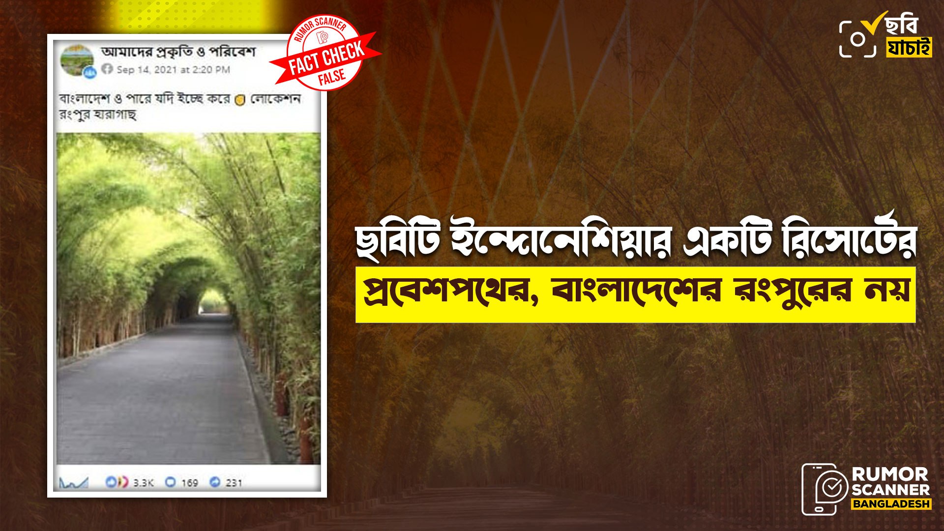 অর্থাৎ, ইন্দোনেশিয়ার বালি দ্বীপে অবস্থিত একটি রিসোর্টের প্রবেশপথের ছবিকে বাংলাদেশের রংপুর বিভাগের ছবি দাবিতে সামাজিক মাধ্যমে প্রচার করা হচ্ছে যা সম্পূর্ণ মিথ্যা এবং গুজব।