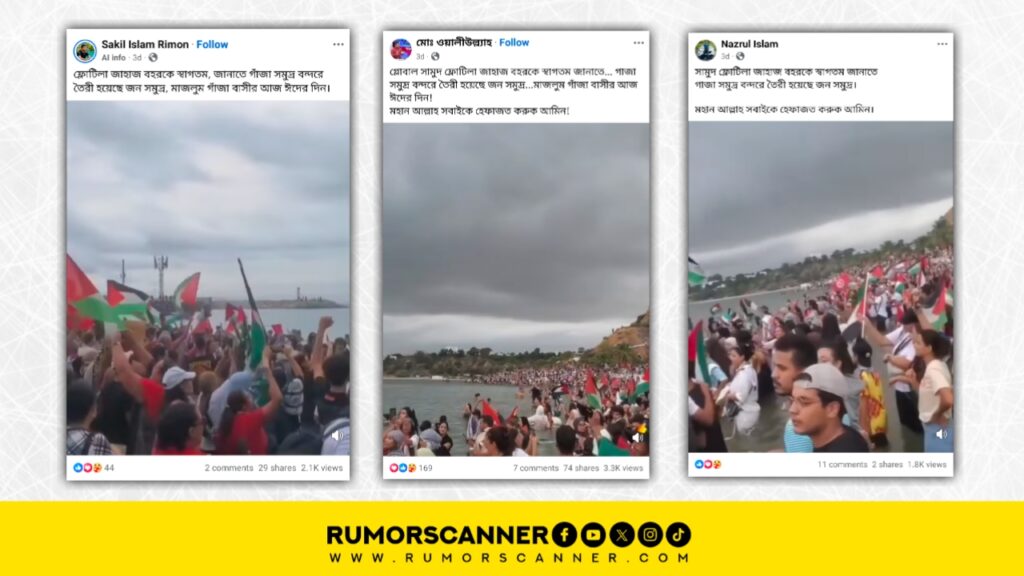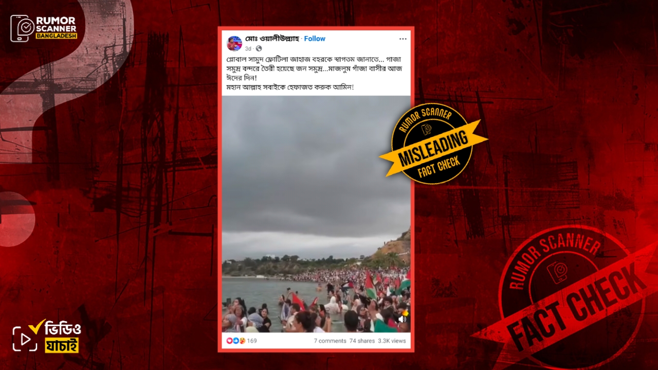 রিউমর স্ক্যানার টিমের অনুসন্ধানে দেখা যায়, আলোচিত ভিডিওটি গাজার নয়। প্রকৃতপক্ষে, ভিডিওটি তিউনিসিয়ার সিদি বু সাইদ বন্দরে তিউনিসিয়াবাসীর গ্লোবাল সুমুদ ফ্লোটিলা নৌবহরকে স্বাগত জানানোর। তিউনিসিয়া থেকে পুনরায় ফ্লোটিলা নৌবহর যাত্রা শুরু করলে সেখান থেকেও বেশ কয়েকটি নৌযান উক্ত নৌবহরে যুক্ত হয়।