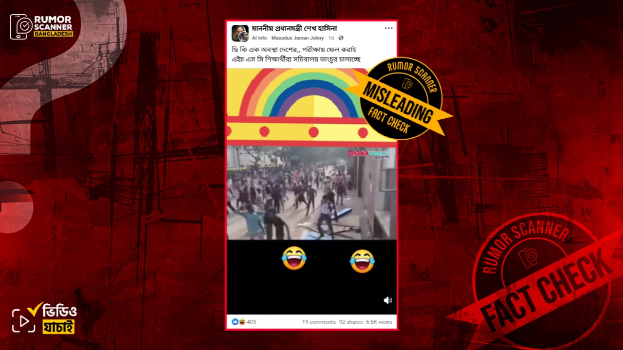 রিউমর স্ক্যানার টিমের অনুসন্ধানে জানা যায়, প্রচারিত ভিডিওটি এইচএসসি-২০২৫ এর পরীক্ষায় ফেল করা শিক্ষার্থীদের কর্তৃক সচিবালয়ে ভাঙচুরের দৃশ্য নয়। প্রকৃতপক্ষে, গত ২১ জুলাই মাইলস্টোন স্কুল অ্যান্ড কলেজে বিমানবাহিনীর জেট বিধ্বস্ত হয়ে ৩১ জন নিহত হওয়ার ঘটনায় ক্ষুব্ধ শিক্ষার্থীরা এরপরের দিন অর্থাৎ, ২২ জুলাই দুপুরে শিক্ষা উপদেষ্টা ও সচিবের পদত্যাগ দাবিতে সচিবালয়ের গেট ভেঙে ও দেয়াল টপকে ভেতরে প্রবেশ করেছিল। সেই সময়কার দৃশ্য এটি।