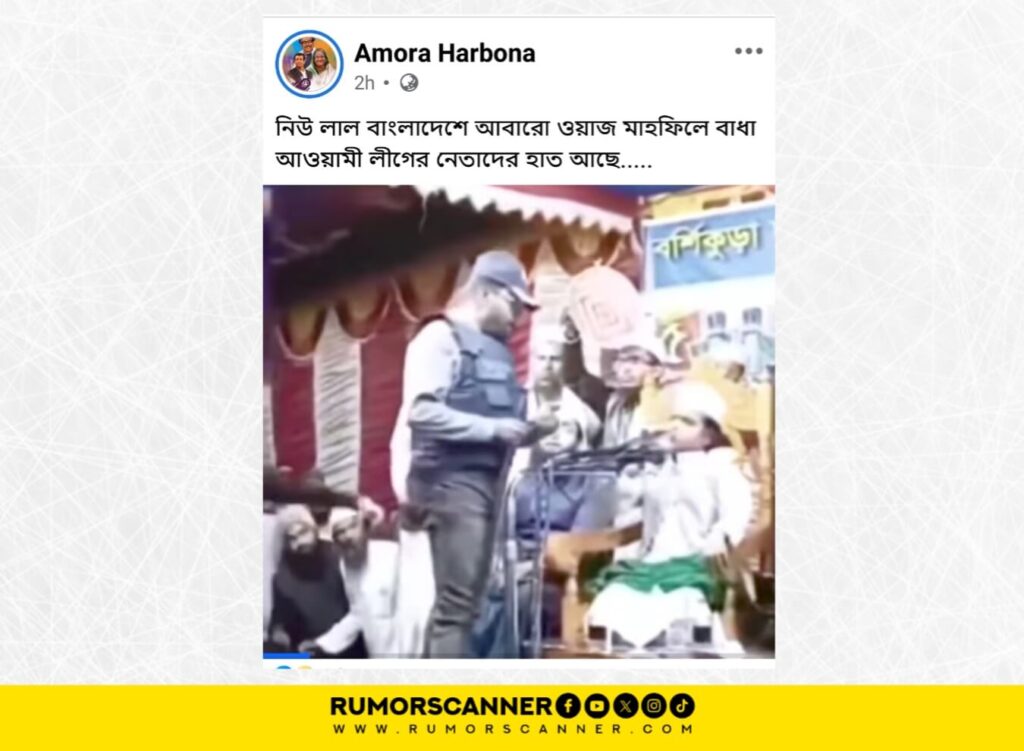 সম্প্রতি সামাজিক যোগাযোগ মাধ্যমে একটি ভিডিও প্রচার করে দাবি করা হচ্ছে, “নিউ লাল বাংলাদেশে আবারো ওয়াজ মাহফিলে বাধা। আওয়ামী লীগের নেতাদের হাত আছে।”