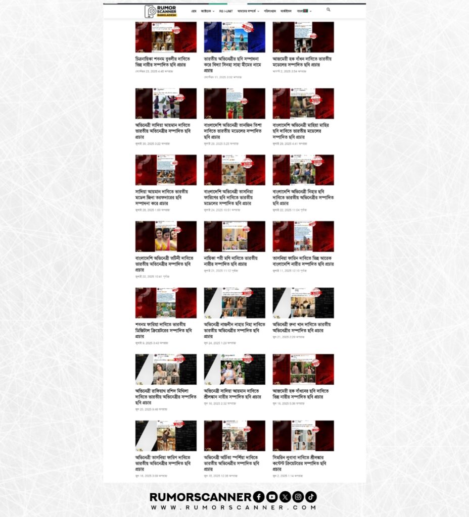 বাংলাদেশ ছাড়া ভারতের কলকাতার বিনোদন তারকাদের জড়িয়েও আটটি অপতথ্যের প্রচার দেখা গেছে পেজটিতে। আগস্টে টলিউডের নায়িকা নুসরাত জাহানকে জড়িয়ে সবচেয়ে বেশি (২টি) অপতথ্যের প্রচার ছিল পেজে।