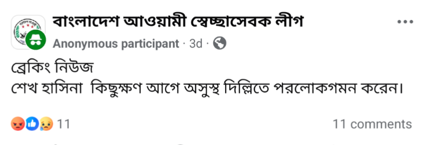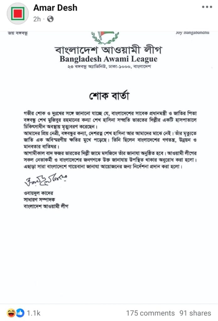 - Bangladesh Awami League Facebook Post