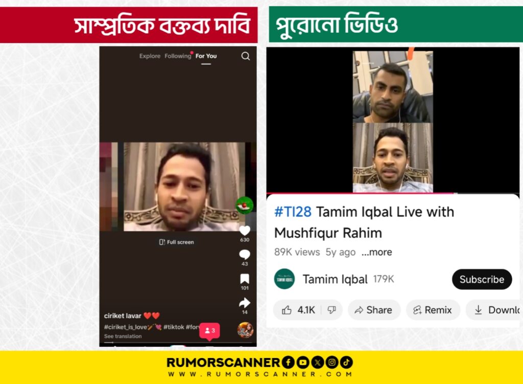 অনুসন্ধানে তামিম ইকবালের অফিশিয়াল ইউটিউব চ্যানেলে ২০২০ সালের ০৫ মে প্রকাশিত একটি ভিডিও খুঁজে পাওয়া যায়। উক্ত ভিডিওটির সাথে প্রচারিত ভিডিওটির মিল পাওয়া যায়।