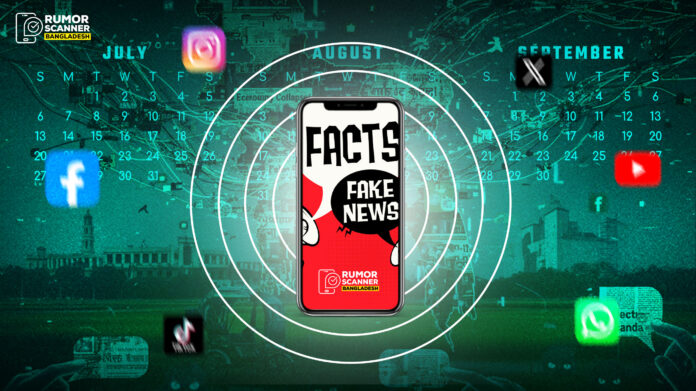 তৃতীয় প্রান্তিকে প্রধান উপদেষ্টা ড. ইউনূসকে জড়িয়ে প্রচার হওয়া ভুল তথ্যের পরিমাণও কমেছে। তাকে জড়িয়ে জানুয়ারি থেকে মার্চে ৫০টি, পরের তিন মাসে ৬২টি ভুল তথ্য প্রচার হলেও তৃতীয় প্রান্তিকে এই সংখ্যা ৩৭টি৷